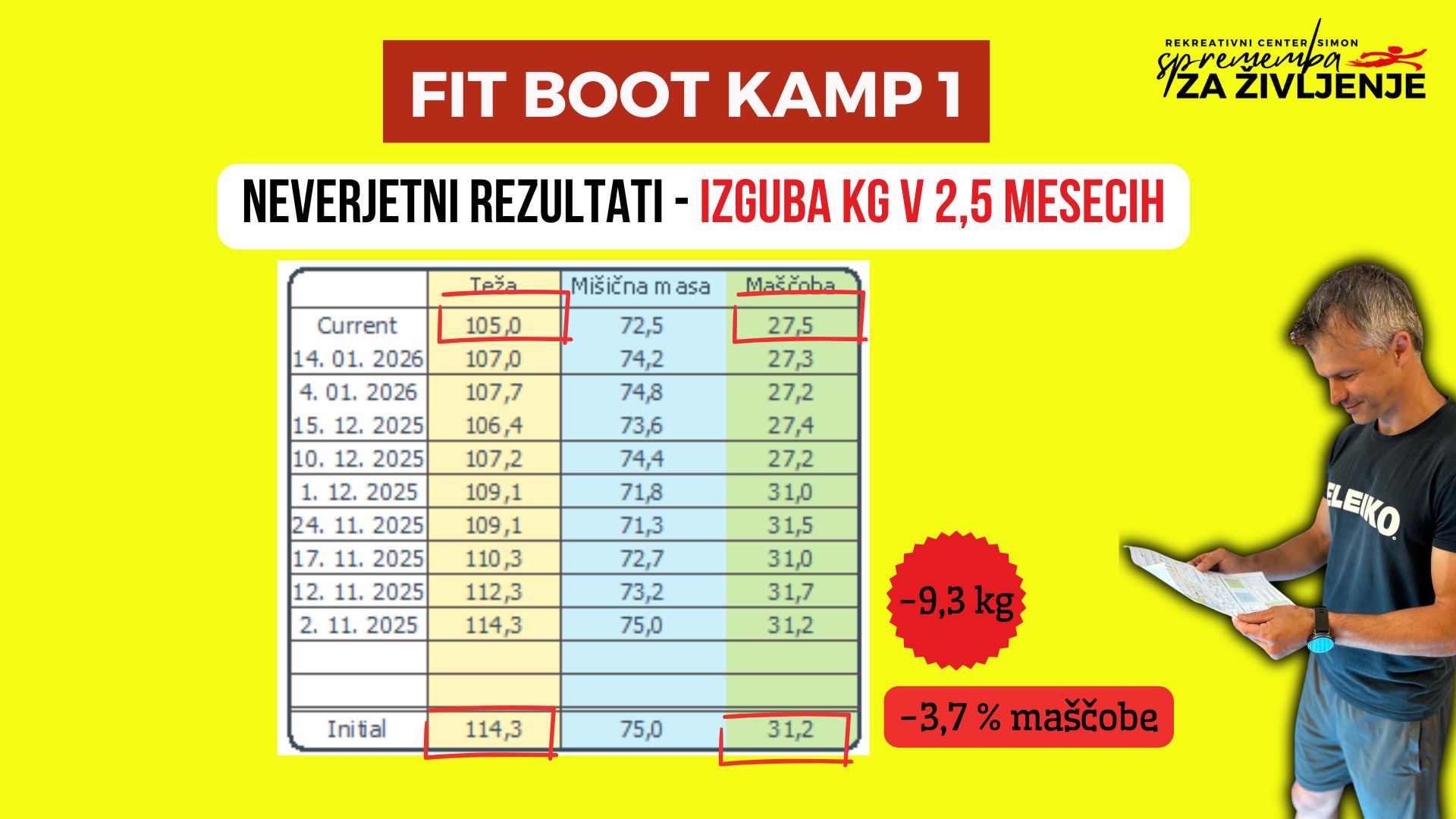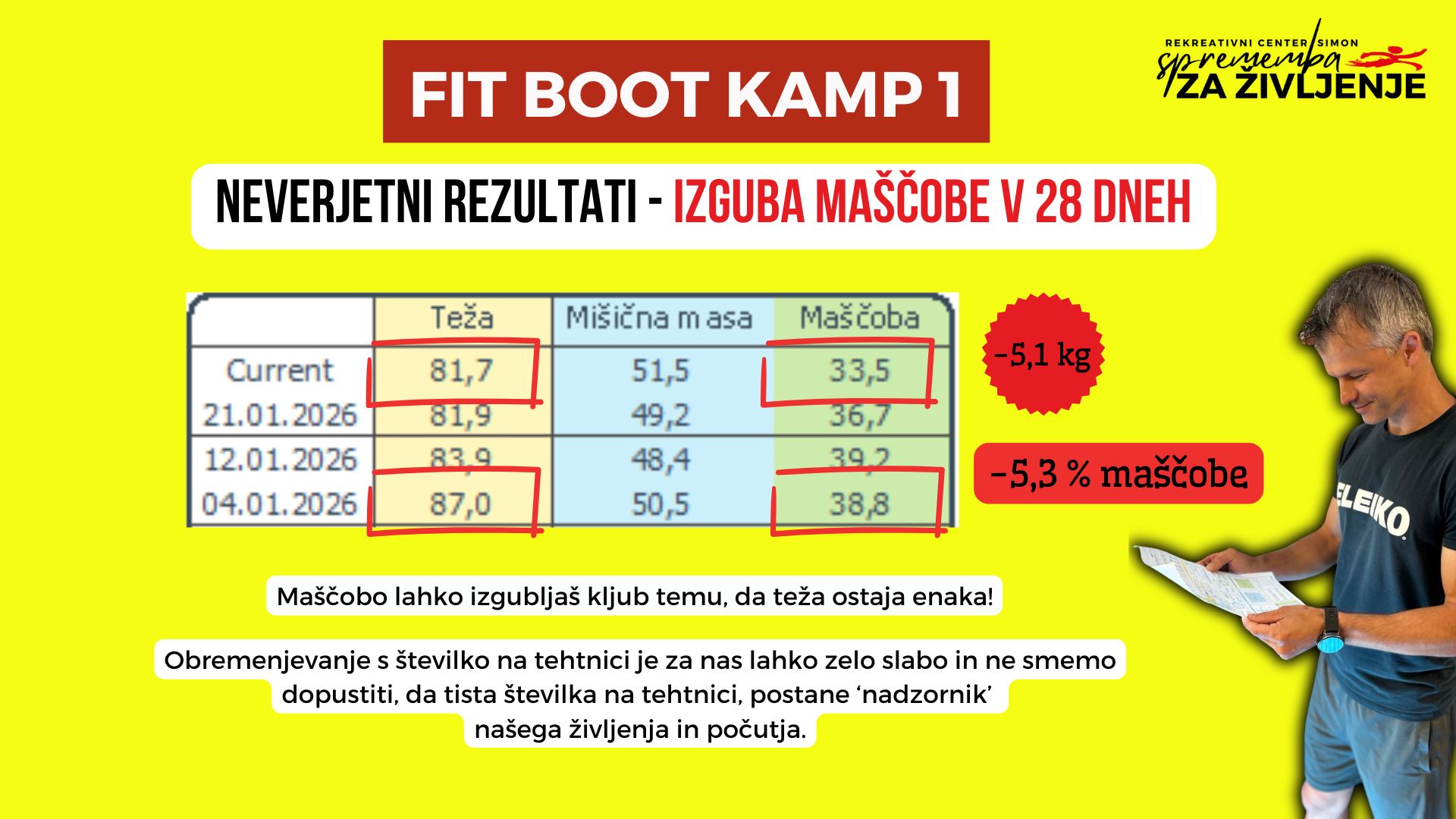 kjer takoj dobiš povratne informacije o svojem napredku. Tako zares vidimo ali se podkožno maščevje zmanjšuje in na podlagi rezultatov ukrepamo naprej.